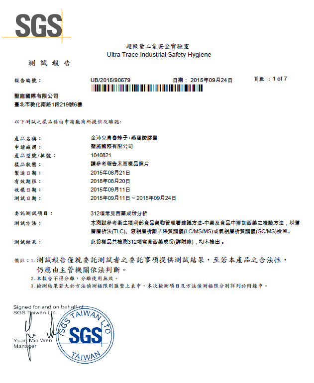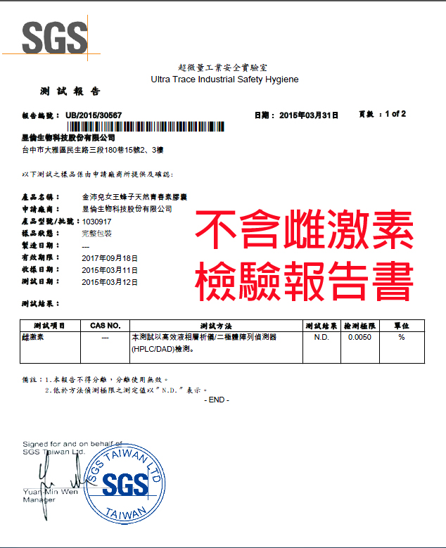 經SGS測試報告 不含312種西藥成份 不含雌激素